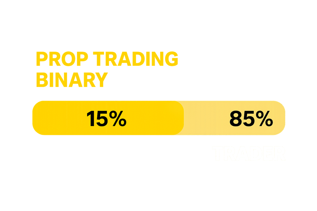 Na Binárias Prop Trading, você fica com 85% do lucro. Nós cuidamos da estrutura e da banca, você mostra seu talento no mercado. A maior parte do esforço é sua, e o maior ganho também. Por isso, garantimos que 85% do lucro é seu, enquanto apenas 15% cobre nossos custos e lucros. Aqui, o trader é protagonista.